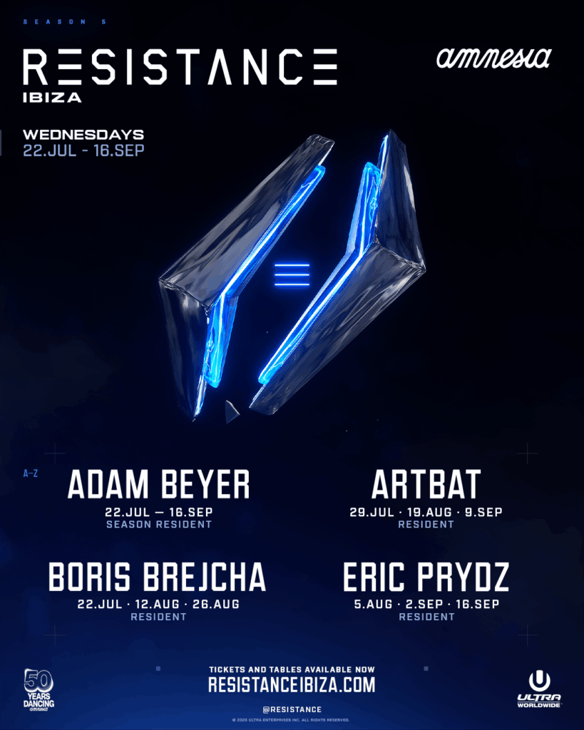 RESISTANCE amplía la programación de la residencia con cuatro residentes de primer nivel —Adam Beyer, ARTBAT, Boris Brejcha y Eric Prydz— marcando uno de los elencos residentes más ambiciosos del verano en la isla.